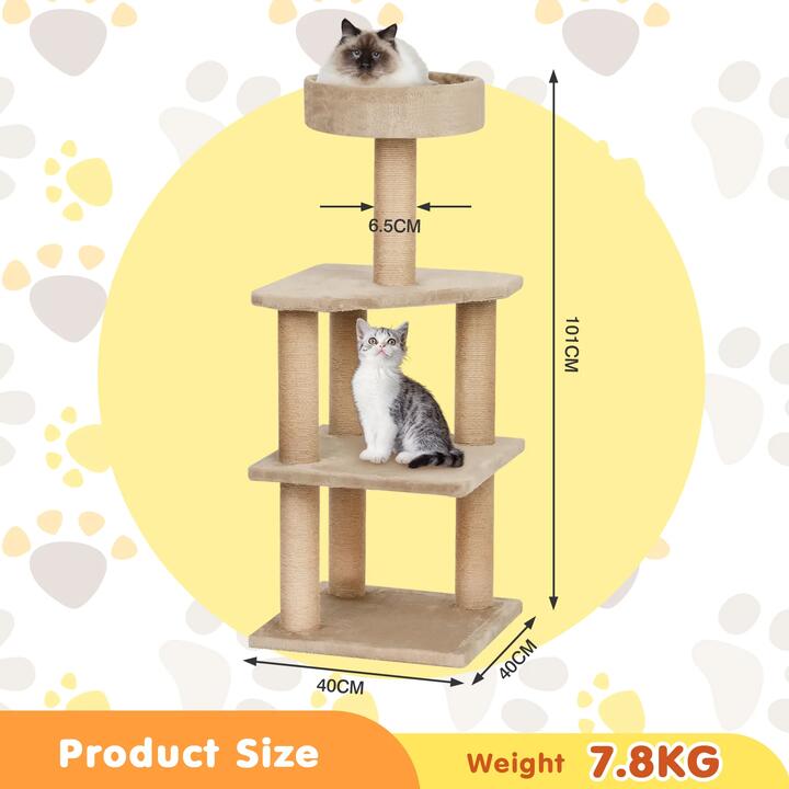 • 😽Multifunctional Design: Overall Size: 40×40×101cm. This cat tree is not only a climbing device, but also a cozy sleeping platform, entertainment and play area, and scratching posts. Meet the various needs of cats!