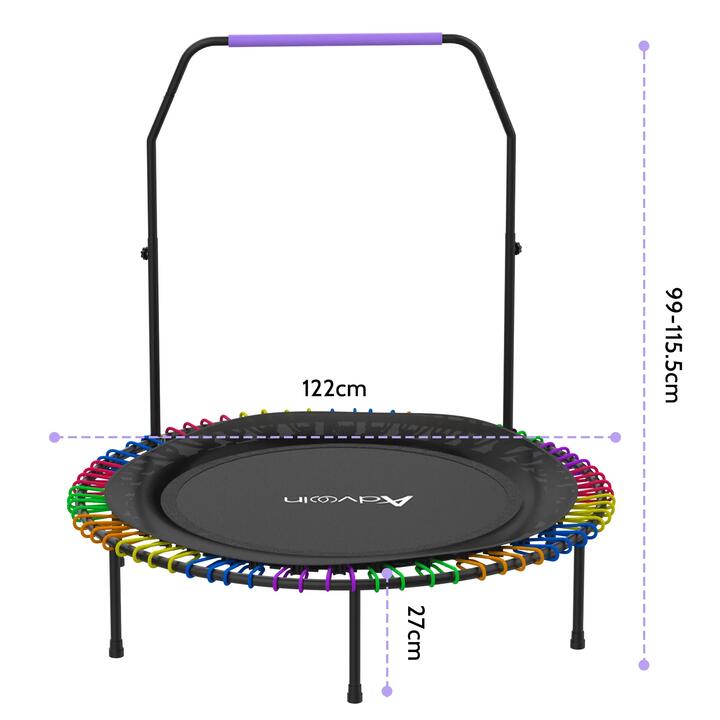Advwin trampoline workouts are ideal for adults and children alike. Fitness trampolines not only are lightweight, safe, and quiet sports equipment but also provide a way more fun to exercise. This trampoline is strong and professional; it’s designed for everyone, its max weight capacity is up to 150KG designed to fit small spaces in the gym or at home, and its convenient size lets you carry it from one spot to another without any hassle.