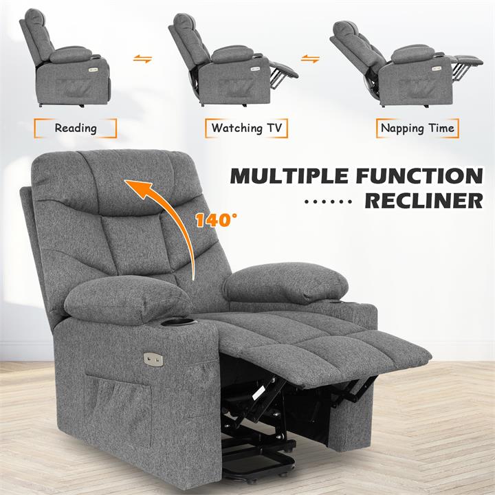 • Comfortable and High-Quality Materials:  The recliner chair is composed of a padded seat and a double-layer backrest. This fabric recliner cushion is filled with high-density foam, which is very comfortable. The soft material provides you with a more comfortable massage environment, allowing you to fully enjoy the massage experience.