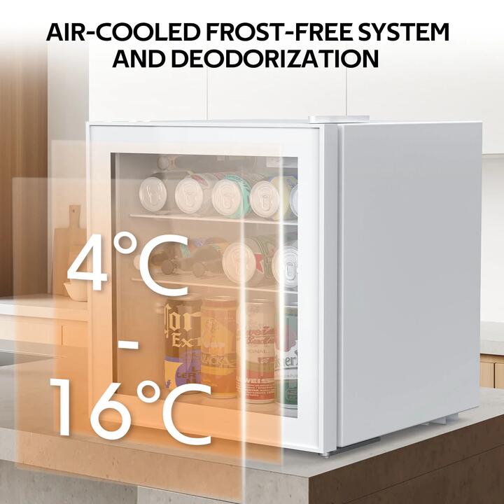 With a capacity of 46L, this appliance provides ample space for storing your favorite beverages, snacks, and more. The adjustable temperature range of 4℃ to 16℃ allows you to customize the cooling settings according to your preferences. The internal lighting ensures easy visibility, making it effortless to find what you need. The reversible door adds flexibility, allowing convenient access from either side.