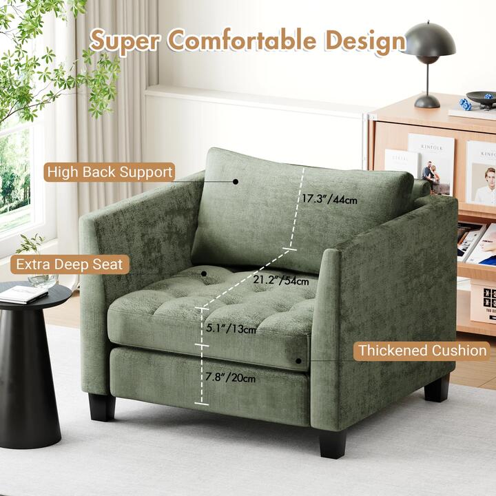 Our single sofa features a unique modern design that is anything but ordinary. The workmanship is meticulous, the fabric is thick, the sewing is perfect, and every part is exquisite. This elegant armchair blends perfectly with any modern décor, allowing you to spend quality time together.