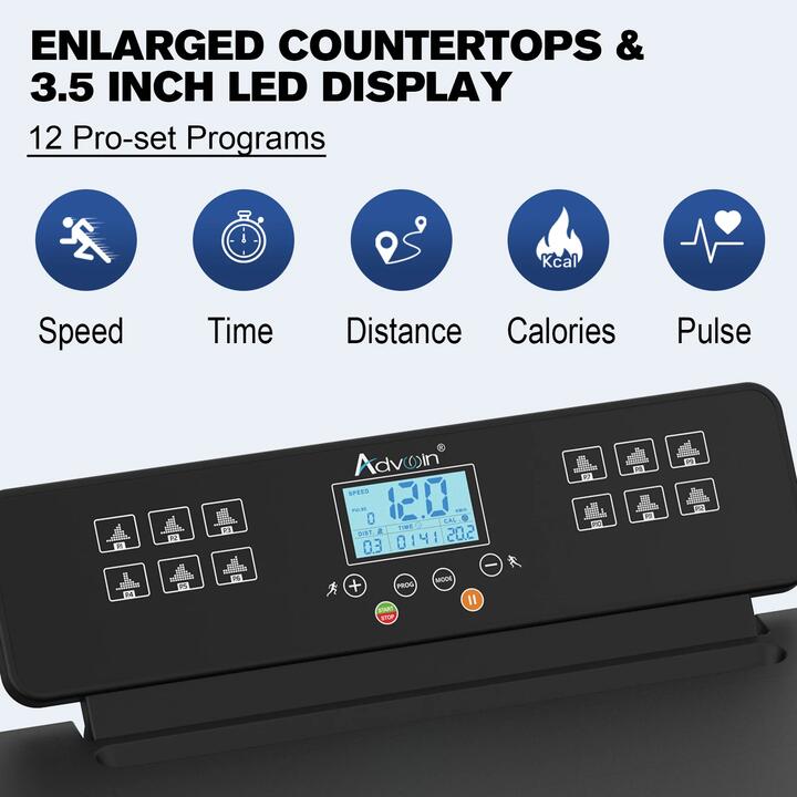 - 👍 Large Desktop & LED Display & Heart Rate Sensor: The spacious desktop is convenient for you to place your Ipad or mobile phone to enjoy more entertainment while exercising. The LED display can track your exercise data including time, distance, calories, speed, and heart rate, making your exercise data available at a glance.