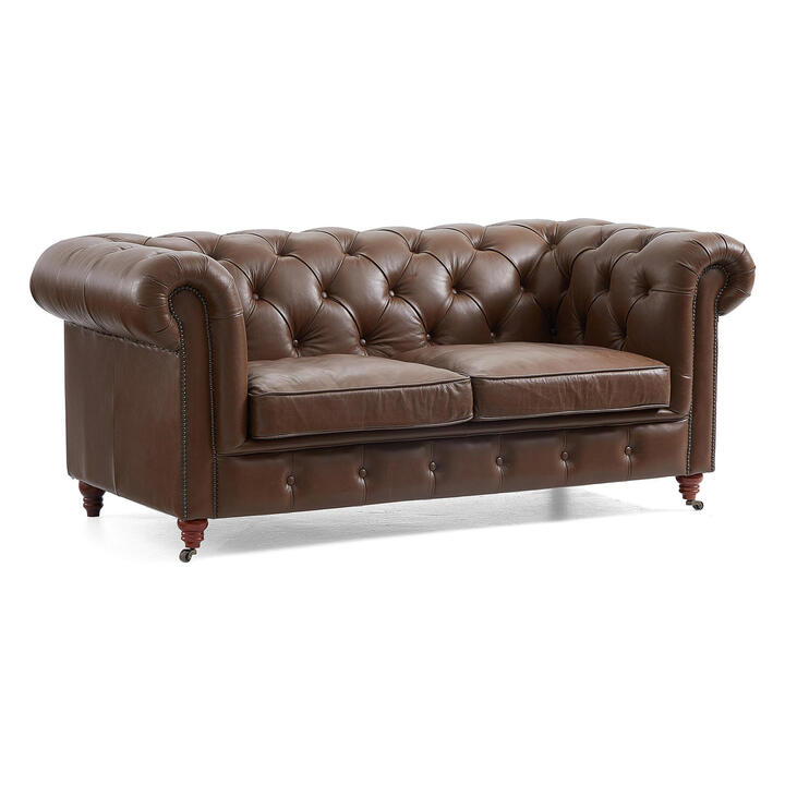 Albrina Leather Chesterfield Sofa, 2 Seater, Brown