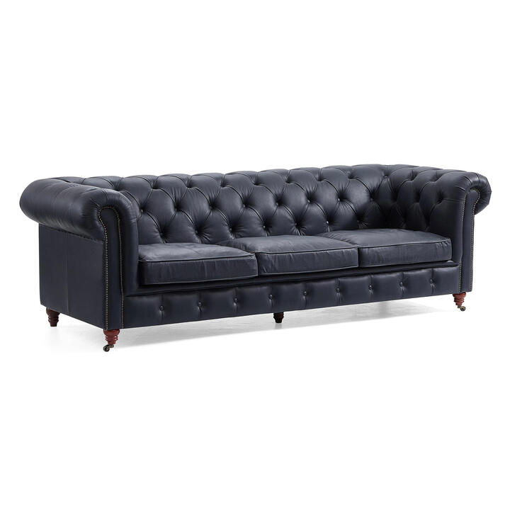 Albrina Leather Chesterfield Sofa, 3 Seater, Black