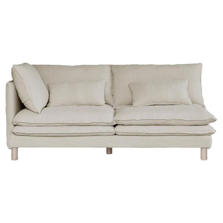 Aura Belgian Linen Fabric Sofa Modular, 2 Seater with LHF Arm, Oatmeal