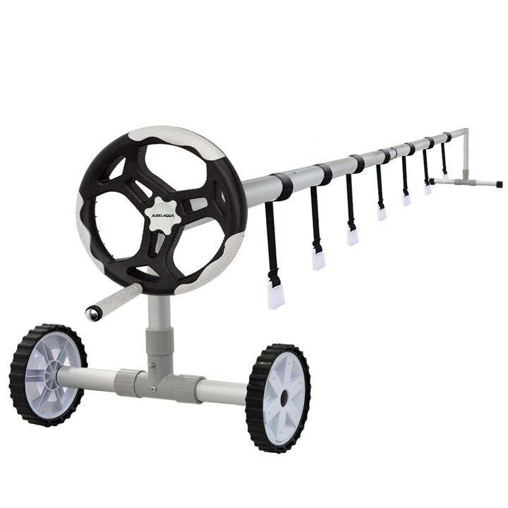AURELAQUA Aluminium Swimming Pool Cover Roller (3.15-4.05m length), Black/Light Grey Handle