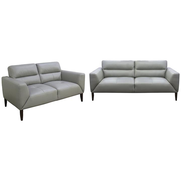 Bavaria 2 Piece Leather Sofa Set, 3+2 Seater, Silver