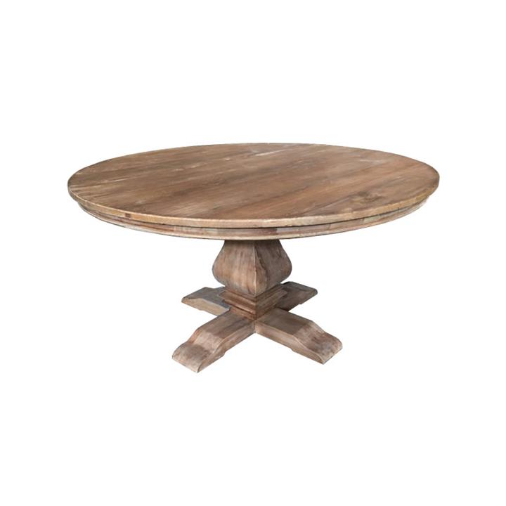 Broussey Reclaimed Elm Timber Round Pedestal Dining Table, 180cm