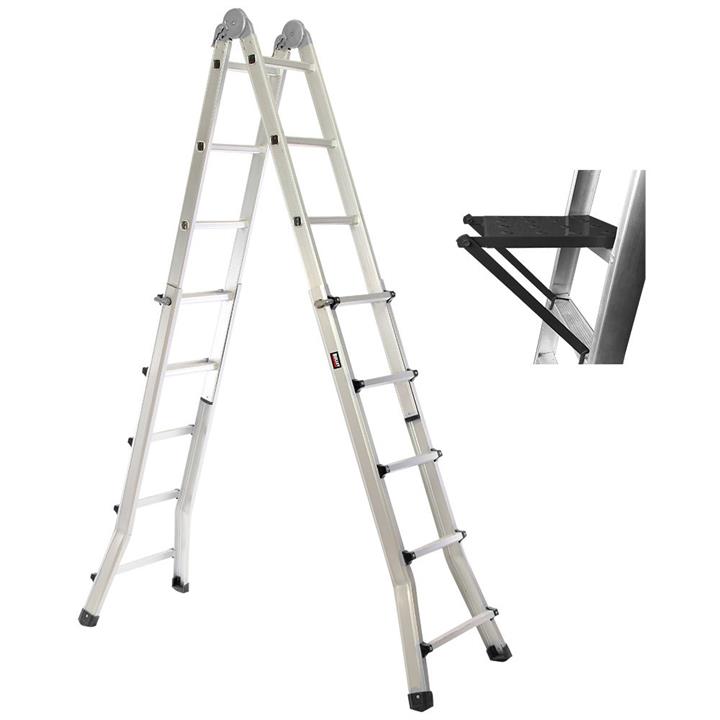 BULLET 2.9m Folding Aluminium Multipurpose Ladder, w/ Workshelf Platform, Spring Assisted Rapid Safety Lock Adjusters