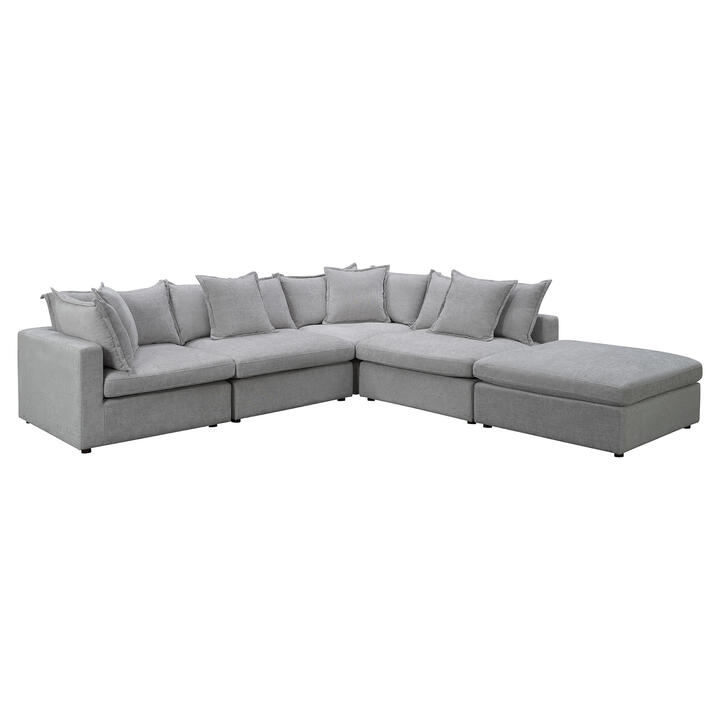 Caraluxe Fabric Modular Corner Sofa, 4 Seater with Ottoman, Silver