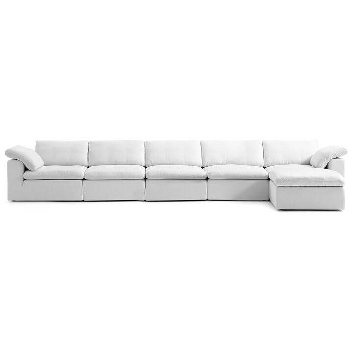 Caura Fabric Modular Sofa / Sofa Bed, 5 Seater with Ottoman, White