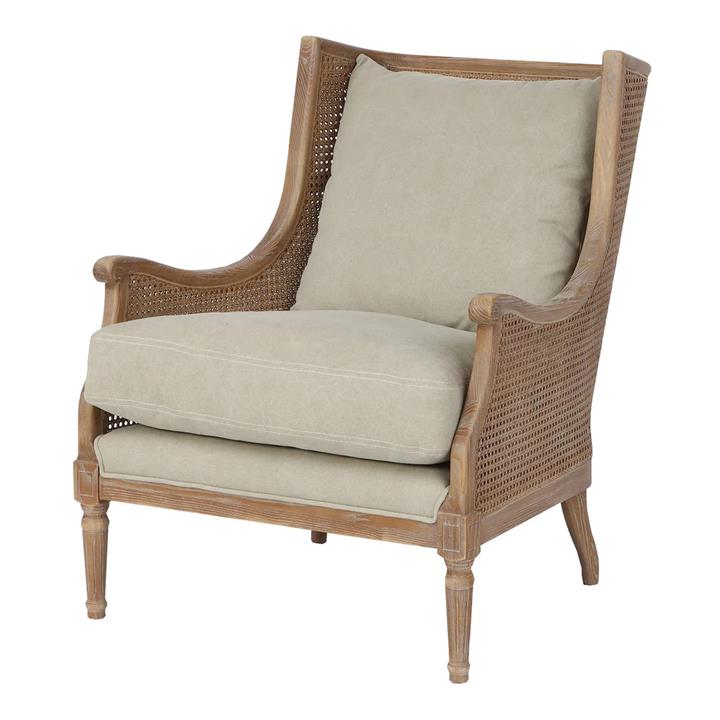 Chester Ashwood & Rattan Armchair with Fabric Cushion, Natural / Beige