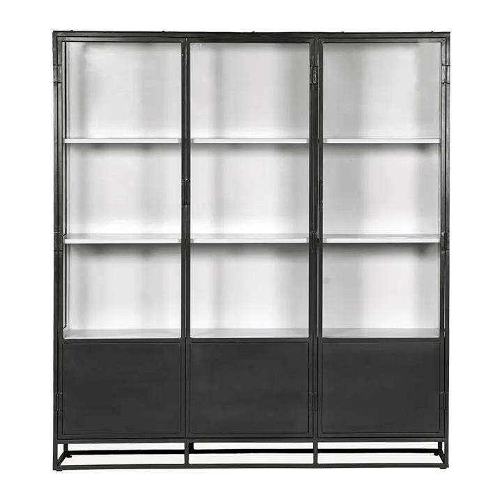 Cole Iron & Glass Display Cabinet, Triple Door, Black