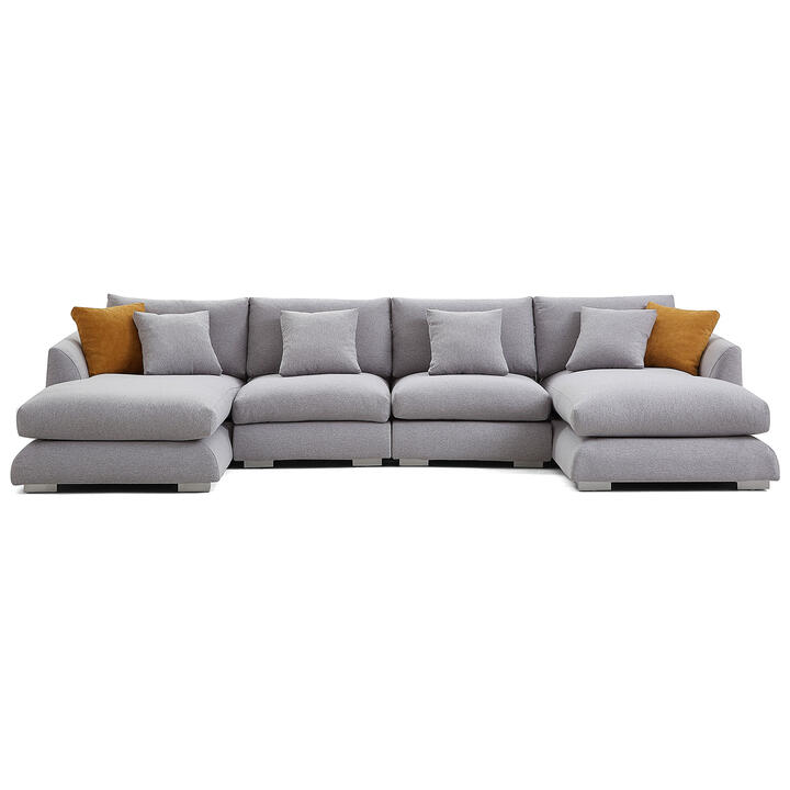Effton Fabric U-shape Sofa, 2 Seater with Double Chaise, Light Grey
