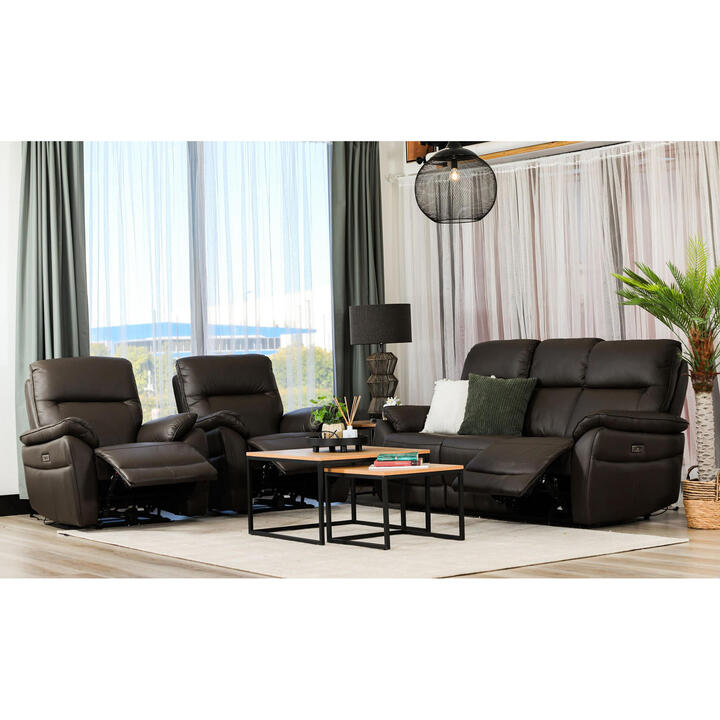 Epoch 3 Piece Leather Electic Recliner Sofa Set, 3+1+1 Seater, Chocolate