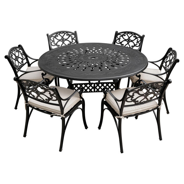 Etna 7 Piece Cast Aluminium Outdoor Round Dining Table Set, 150cm