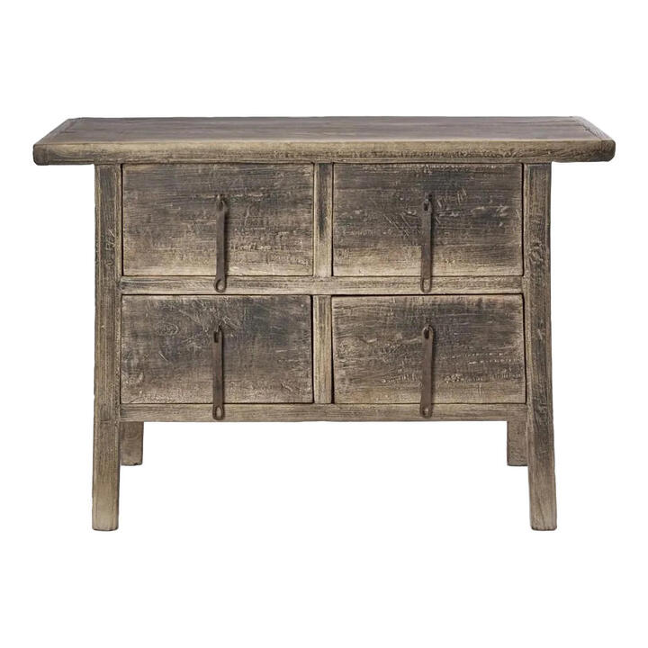 Feng Long 130 Year Antique Elm Timber Oriental 4 Drawer Side Cabinet, 119cm