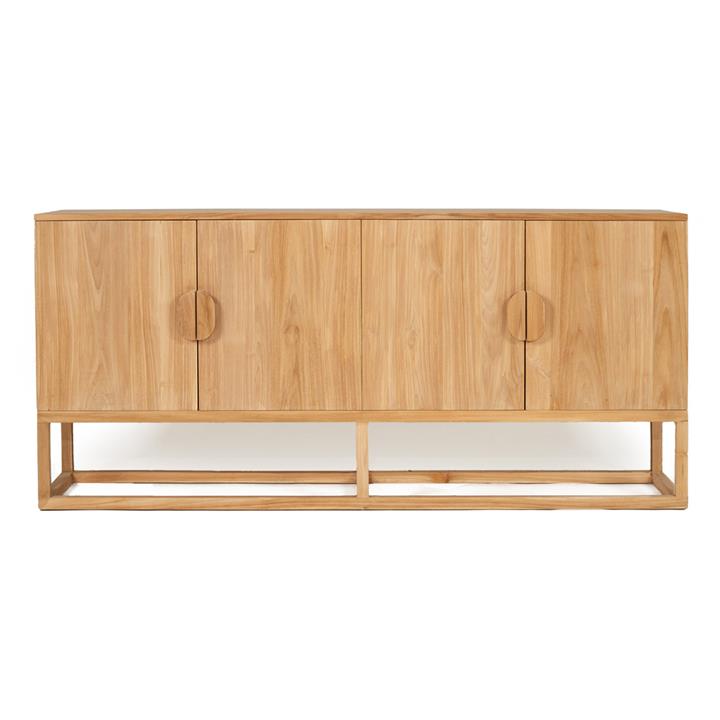 Floro Teak Timber 4 Door Sideboard, 200cm, Natural