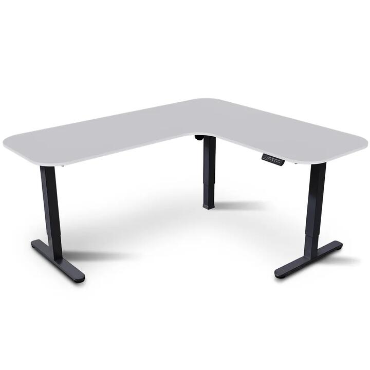 FORTIA Corner Standing Desk, 1730W x 1730W x 750D, 3 Motors, 120kg Load, Sit to Stand Up Electric Height Adjustable, White/Black Frame