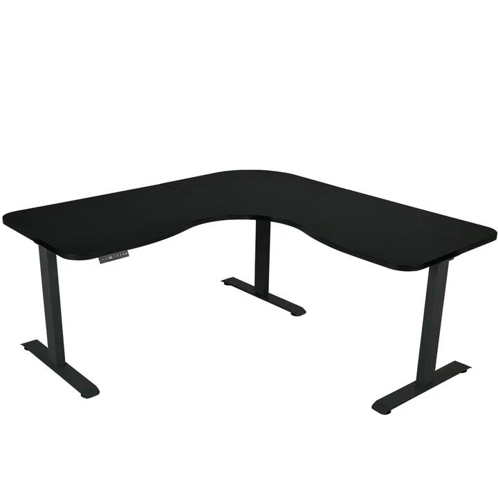 FORTIA Corner Standing Desk, 1730W x 1730W x 750D, 3 Motors, 120kg Load, Sit to Stand Up Electric Height Adjustable, Black/Black Frame