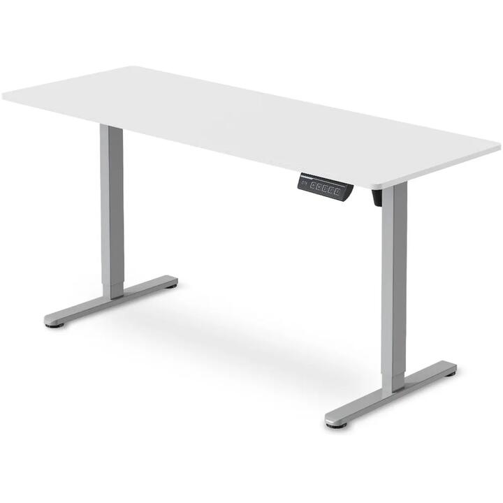 FORTIA Sit to Stand Standing Desk, 160x60cm, 72-118cm Electric Height Adjustable, White Desktop/Silver Frame