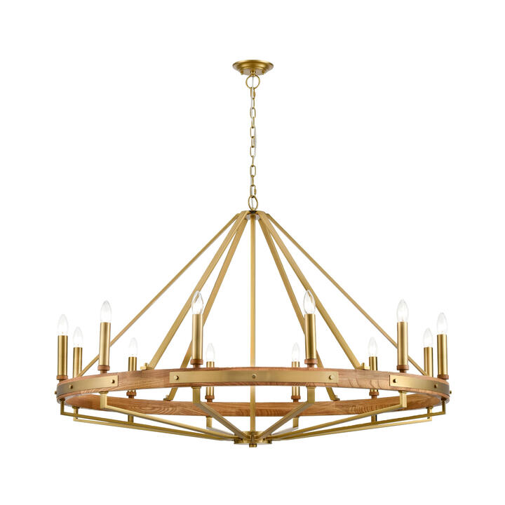 Funale Wood & Iron Candelabra Pendant Light, 12 Light, Oak / Brass