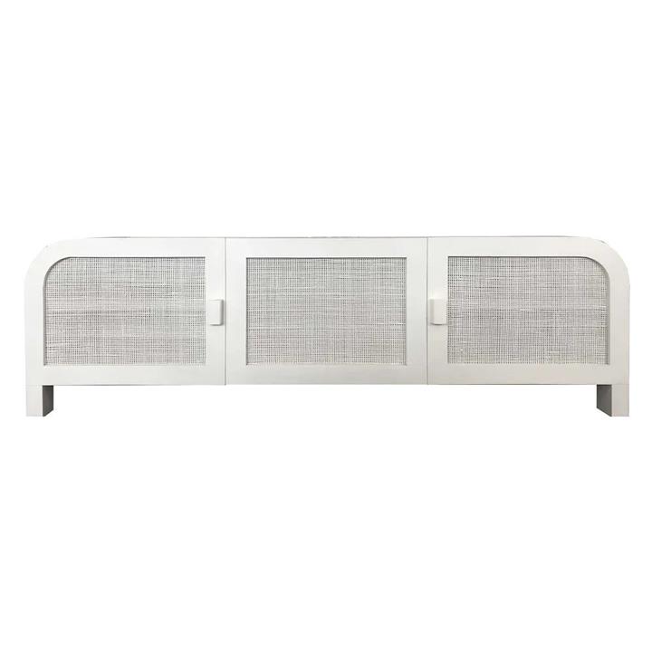 Grace Timber & Rattan 3 Door TV Unit, 180cm, Chalk