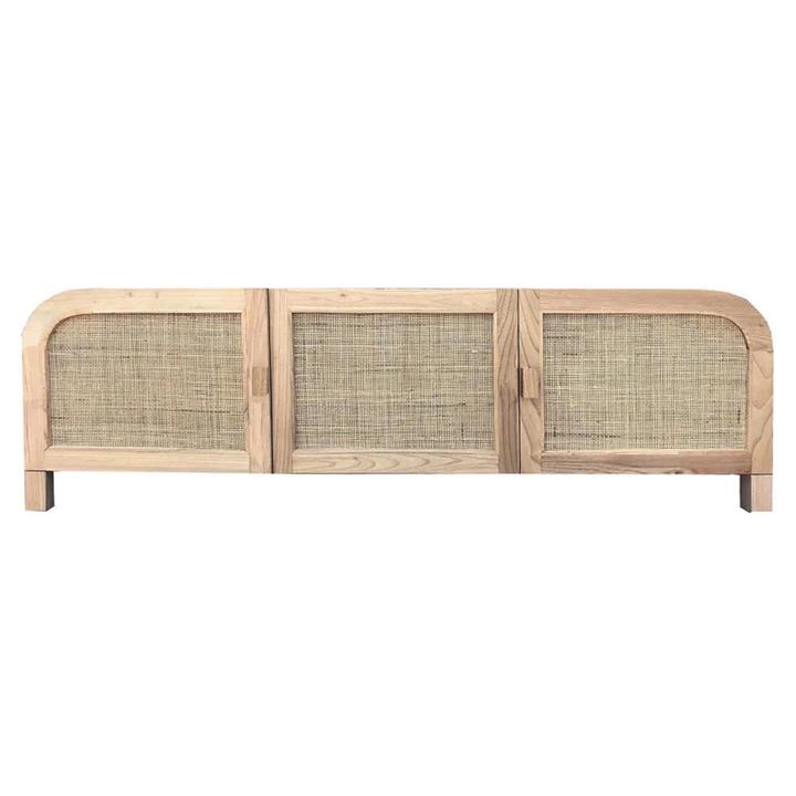 Grace Timber & Rattan 3 Door TV Unit, 180cm, Natural