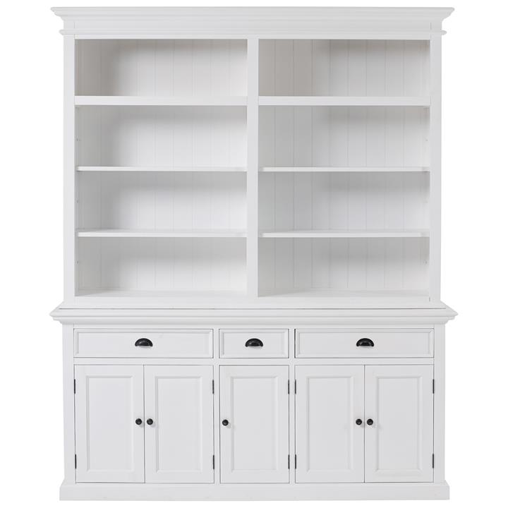 Halifax Mahogany Timber 4 Door 2 Drawer 8 Shelf Hutch Cabinet, White