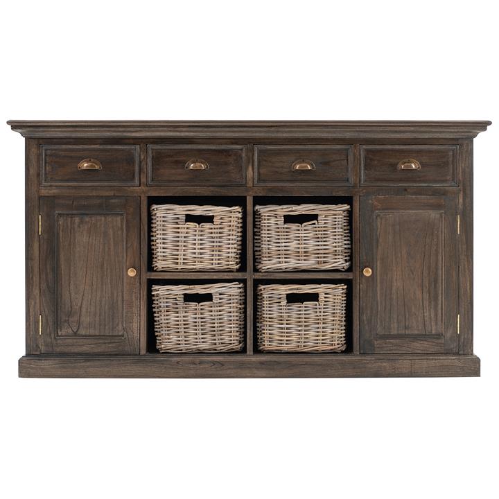 Halifax Mindi Wood 2 Door 4 Drawer Buffet Table with 4 Rattan Baskets, 160cm