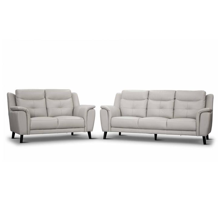 Hexam 2 Piece Leather Sofa Set, 3+2 Seater, Silver