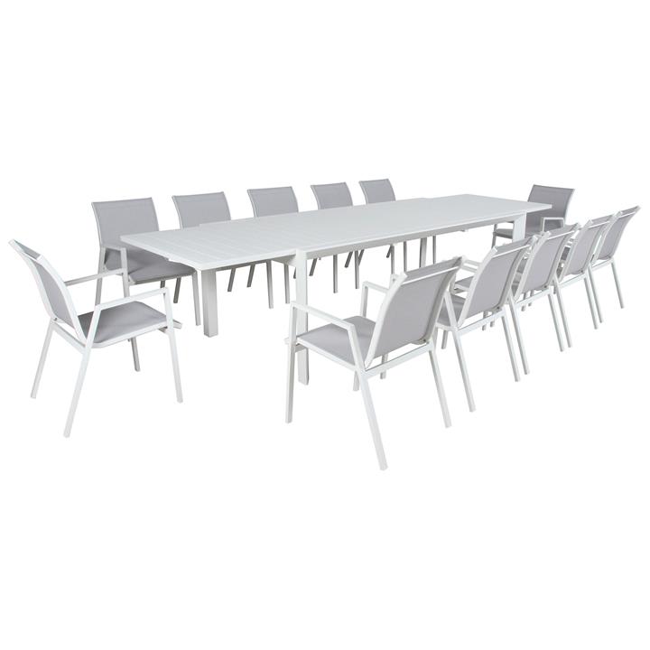 Icarus 13 Piece Aluminium Outdoor Extensible Dining Table Set, 230-345cm, White