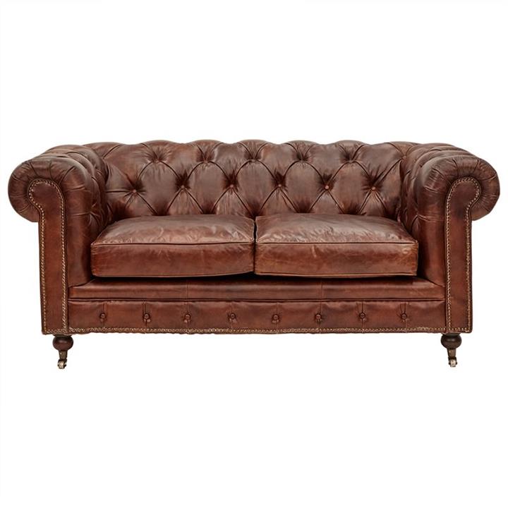 Kensington Aged Leather Chesterfield Sofa, 2 Seater, Vintage Brown