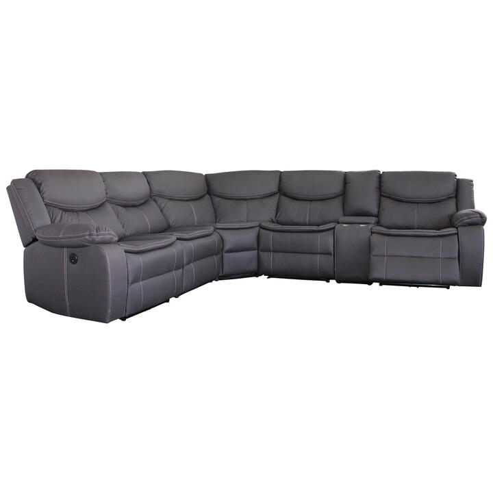 Leonay Leather Look Fabric Modular Corner Sofa with Electric Recliners, 6 Seater, Dark Grey