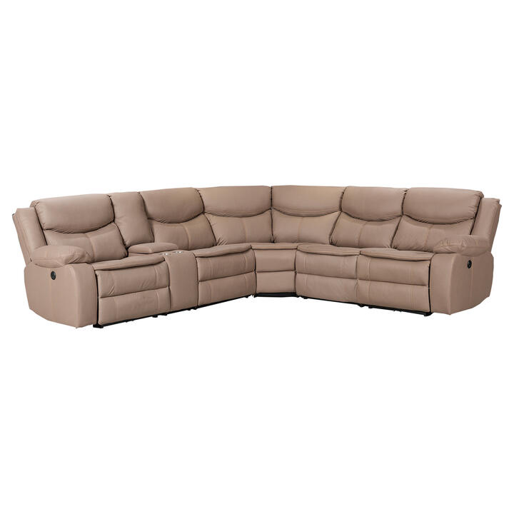 Leonay Leather Look Fabric Modular Corner Sofa with Electric Recliners, 6 Seater, Latte