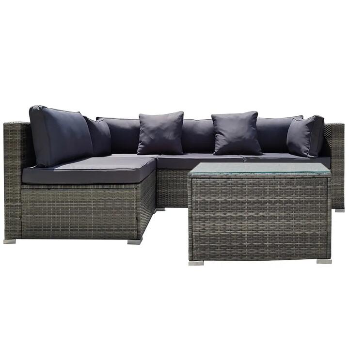 LONDON RATTAN 5 Piece 4 Seater Outdoor Modular Lounge Setting with Coffee Table, Grey