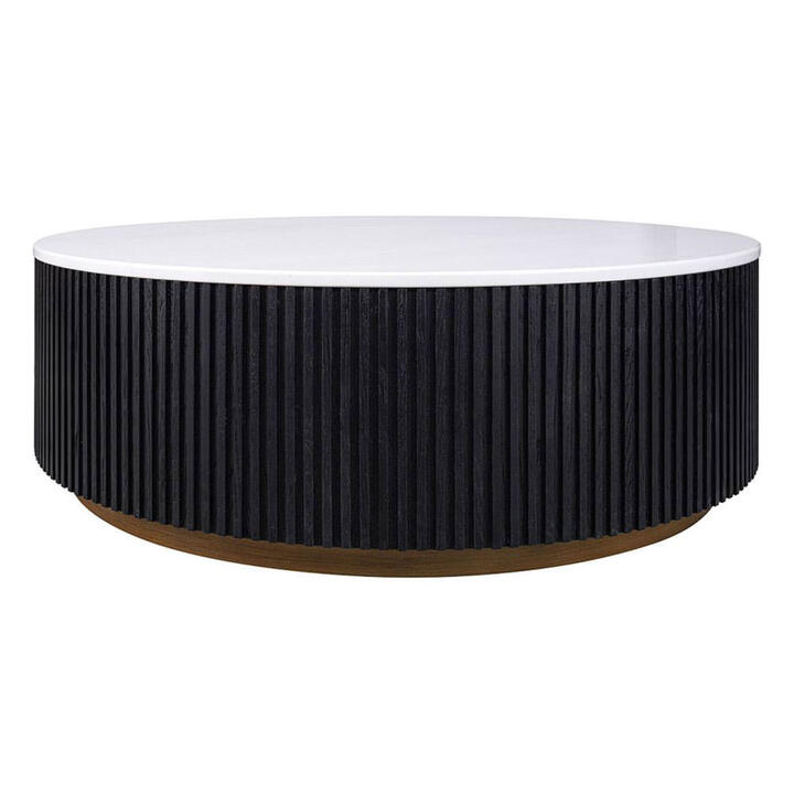 Mason Marble & Oak Round Coffee Table, 110cm, Black