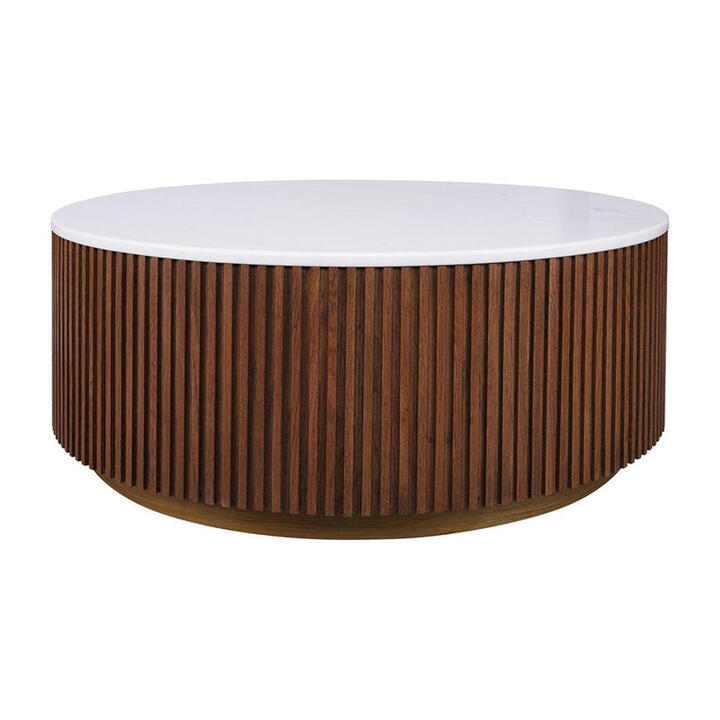 Mason Marble & Oak Round Coffee Table, 90cm, Walnut