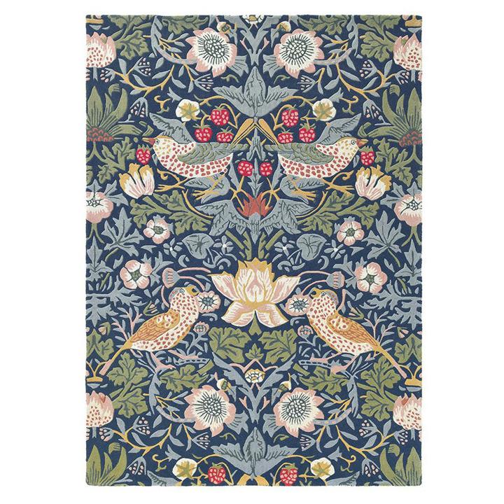 Morris & Co Strawberry Thief Hand Tufted Designer Wool Rug, 280x200cm, Indigo