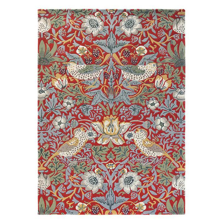 Morris & Co Strawberry Thief Hand Tufted Designer Wool Rug, 350x250cm, Crimson