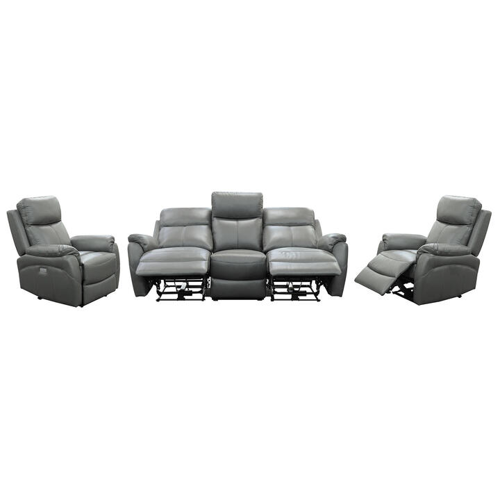 Nivlac 3 Piece Leather Electic Recliner Sofa Set, 3+1+1 Seater, Gunmetal