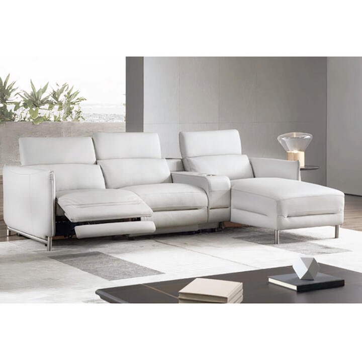 Petra Leather Electric Recliner Sofa, 2 Seater with RHF Chaise & Console, Oat White