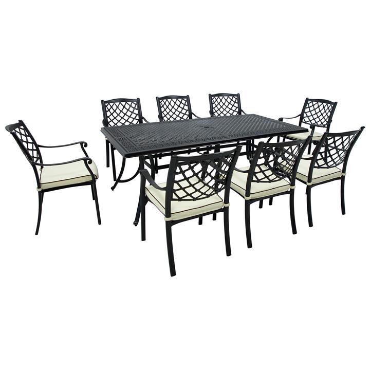 Positano Cast Aluminium 9 Piece Outdoor Dining Table Set, 213cm