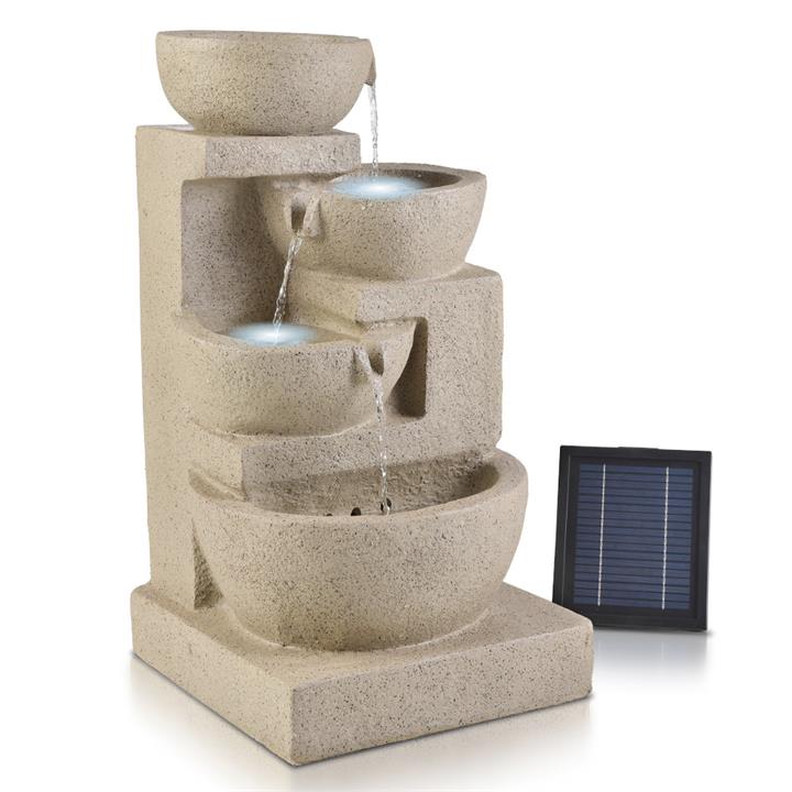 PROTEGE 4 Bowl Solar Powered Water Feature Fountain with LED Lights – Sand Colour