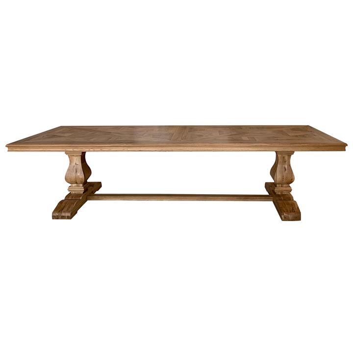 Raventon Oak Timber Parquetry Top Trestle Dining Table, 300cm, Natural Oak