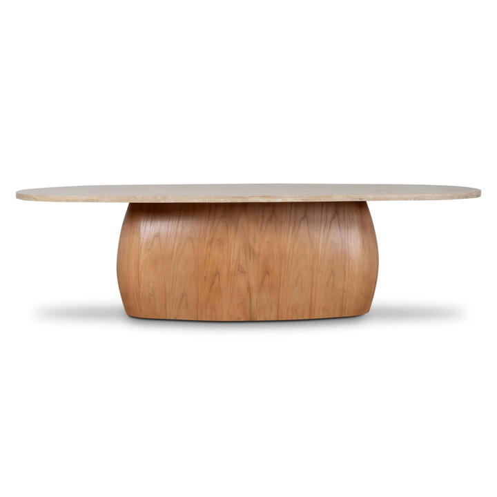 Rexton Travertine & Timber Oval Dining Table, 280cm