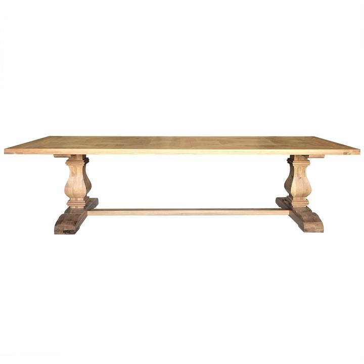 Rimini Oak Timber Trestle Dining Table, Parquetry Top, 300cm, Natural