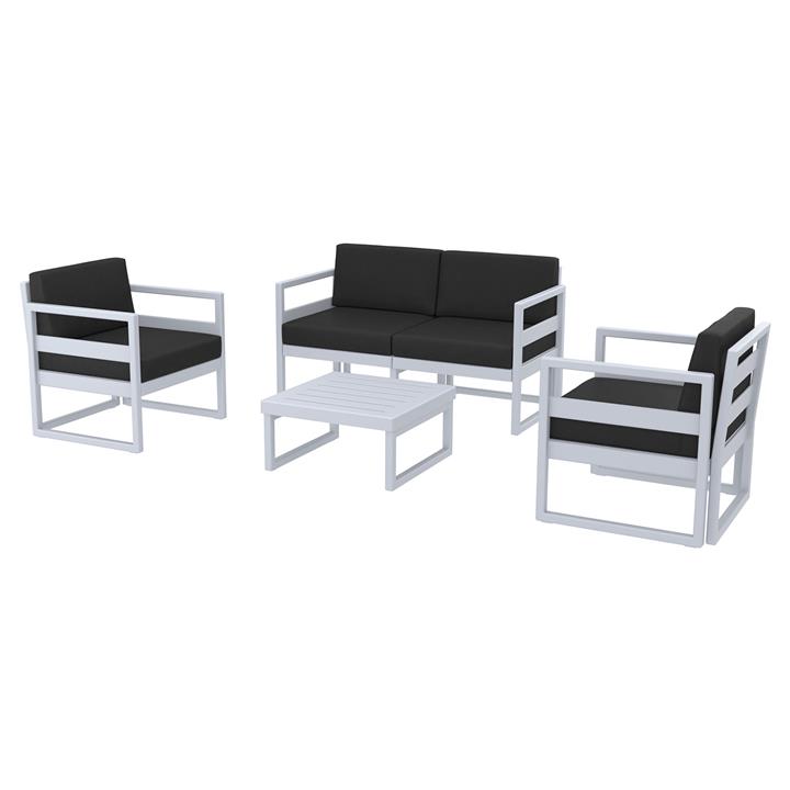 Siesta Mykonos 4 Piece Outdoor Lounge Set with Cushions, 2+1+1 Seater, Silver Grey / Black