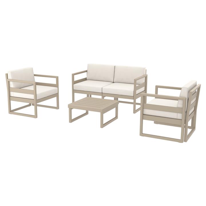 Siesta Mykonos 4 Piece Outdoor Lounge Set with Cushions, 2+1+1 Seater, Taupe / Beige