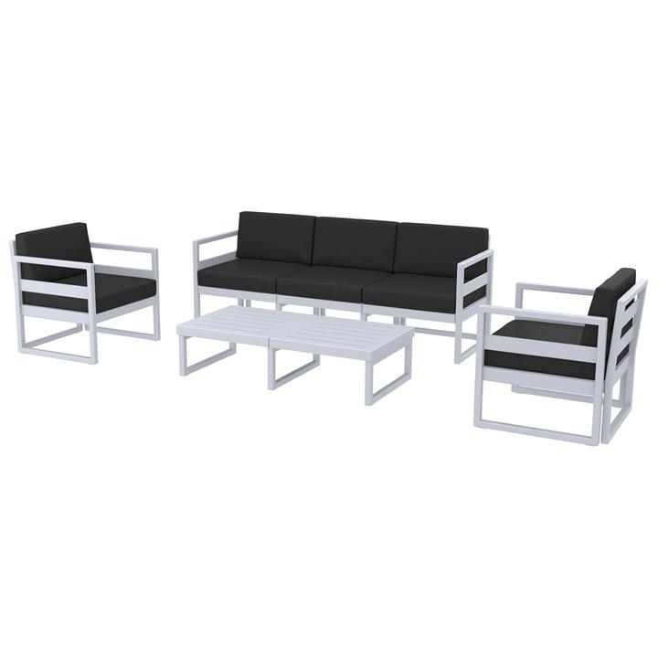 Siesta Mykonos 4 Piece Outdoor Lounge Set with Cushions, 3+1+1 Seater, Silver Grey / Black